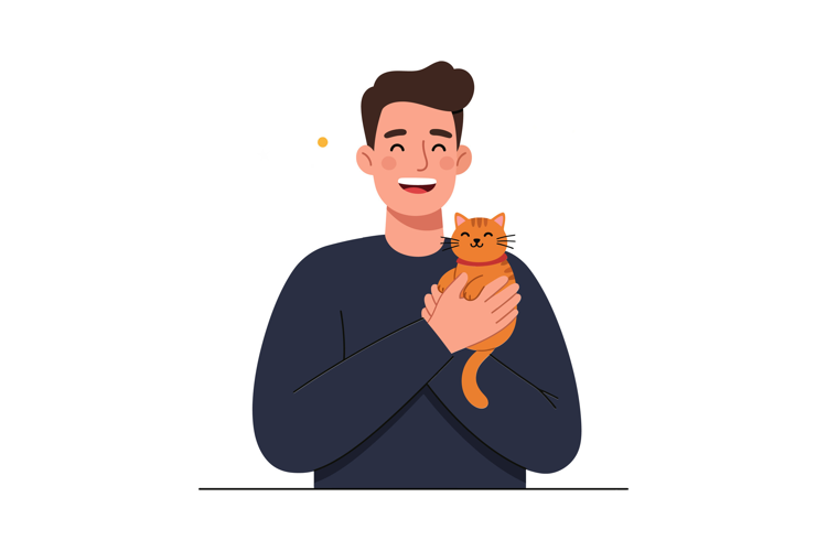 Vector Playful Man Smile Happy Orange Cat Pet Holding Fur