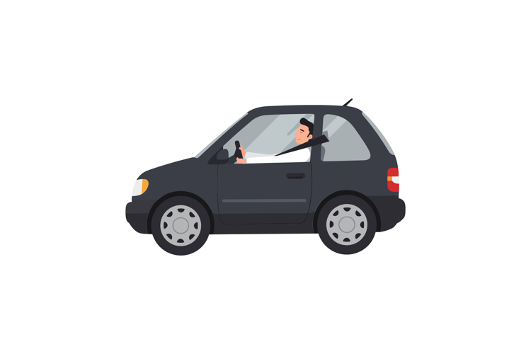Flat Vector Art Black Digital Person Car Vehicle Driver Wheels