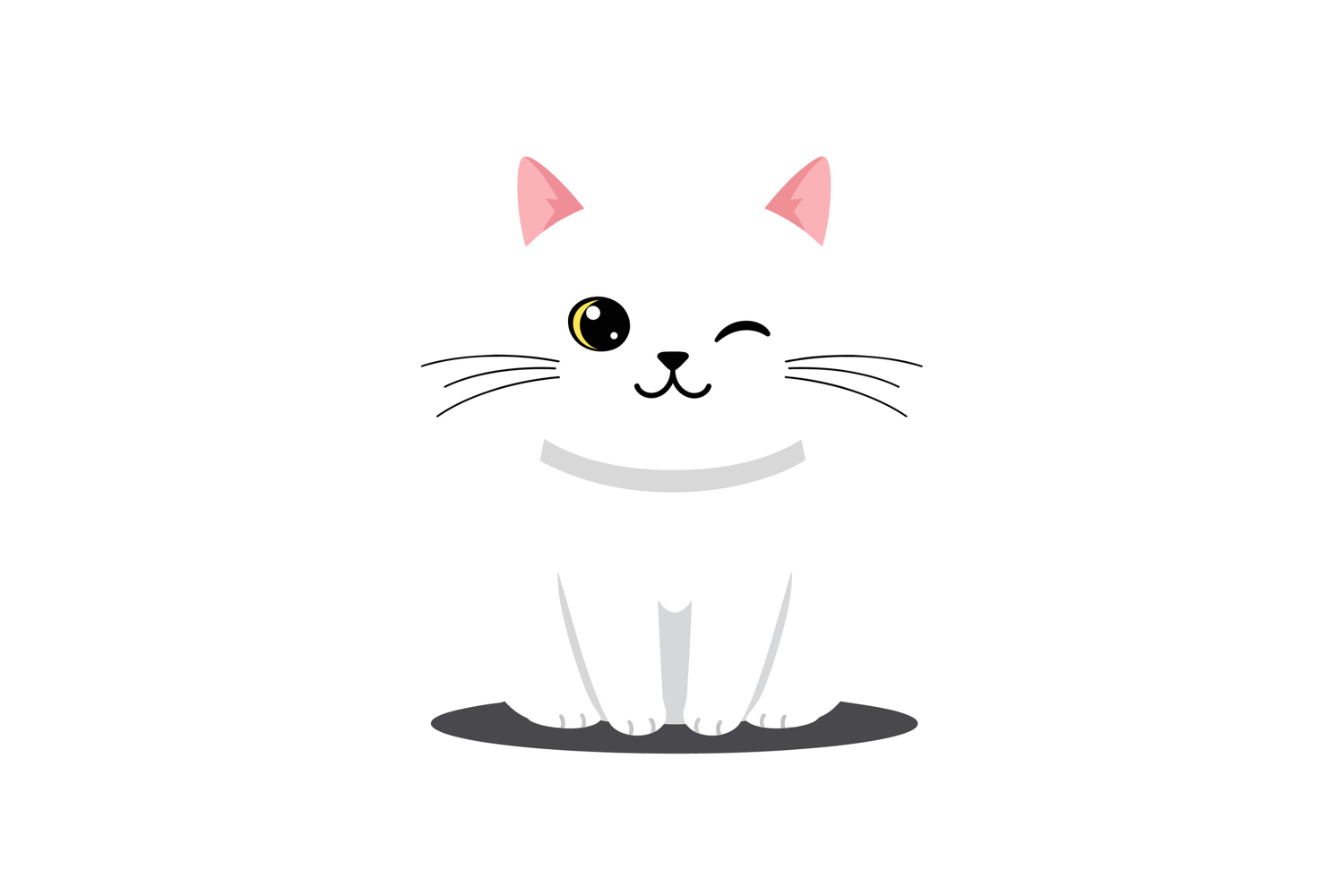 Character Flat Vector Playful Art Cute Design Digital Cat White