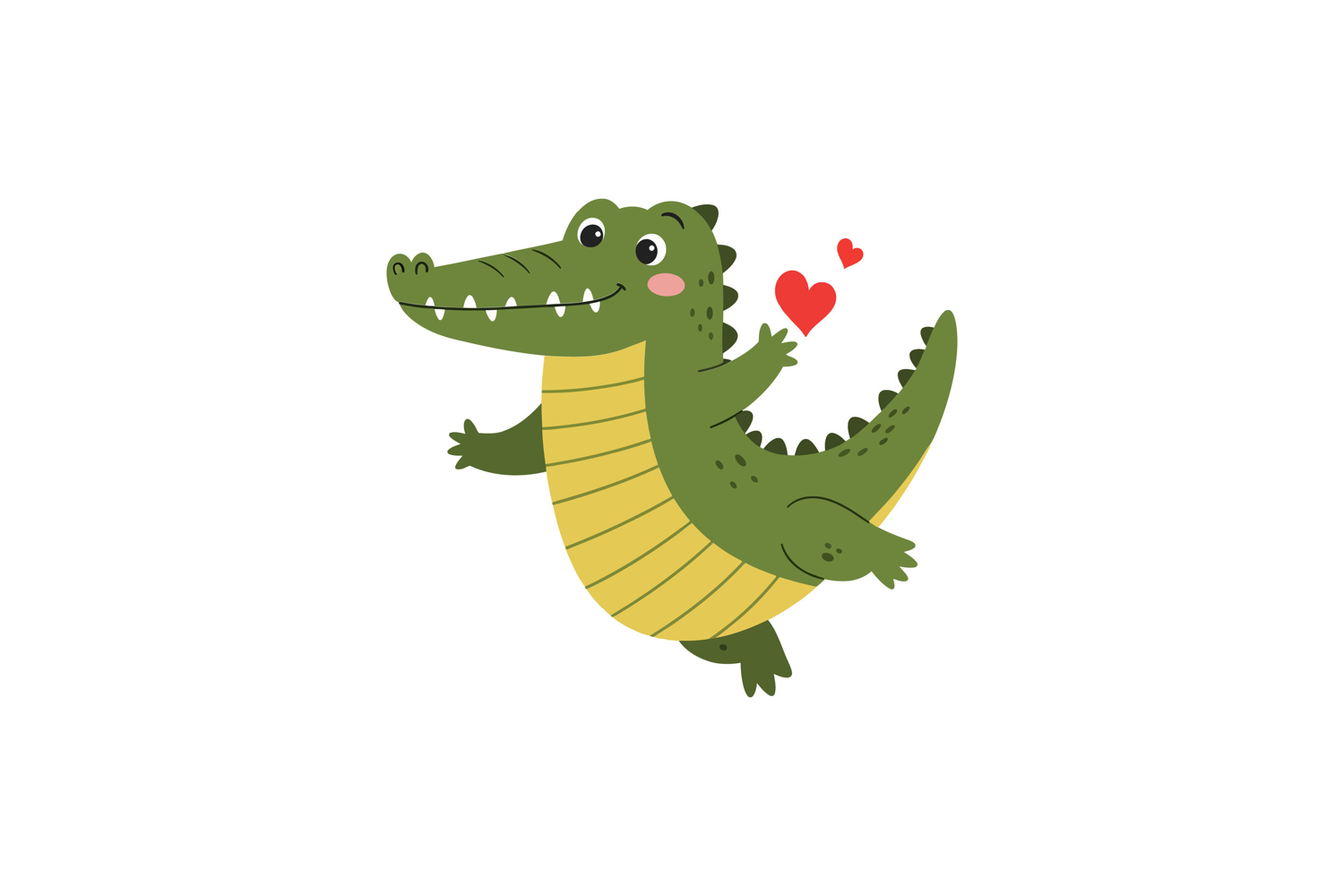 Happy crocodile character design in flat style with hearts a example image 1