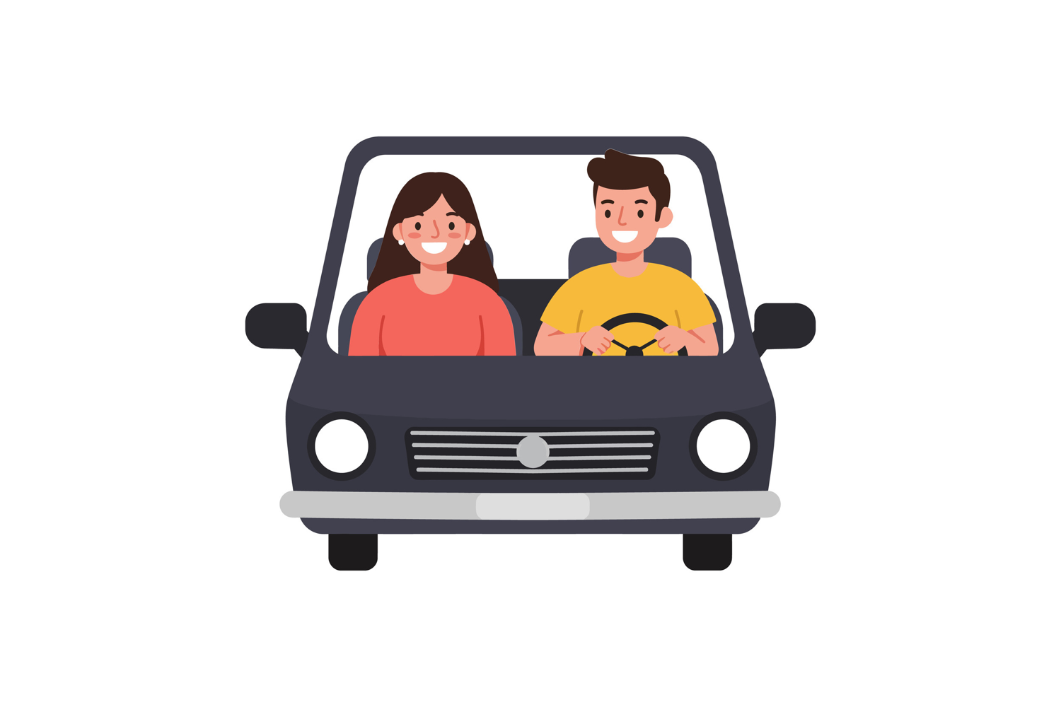Similar Design Products to Two smiling individuals in a car with a flat design style in