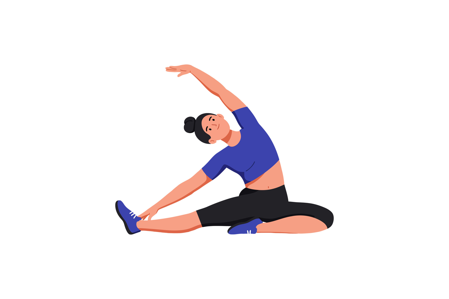 Woman performing a side stretch in a vibrant flat style vect example image 1