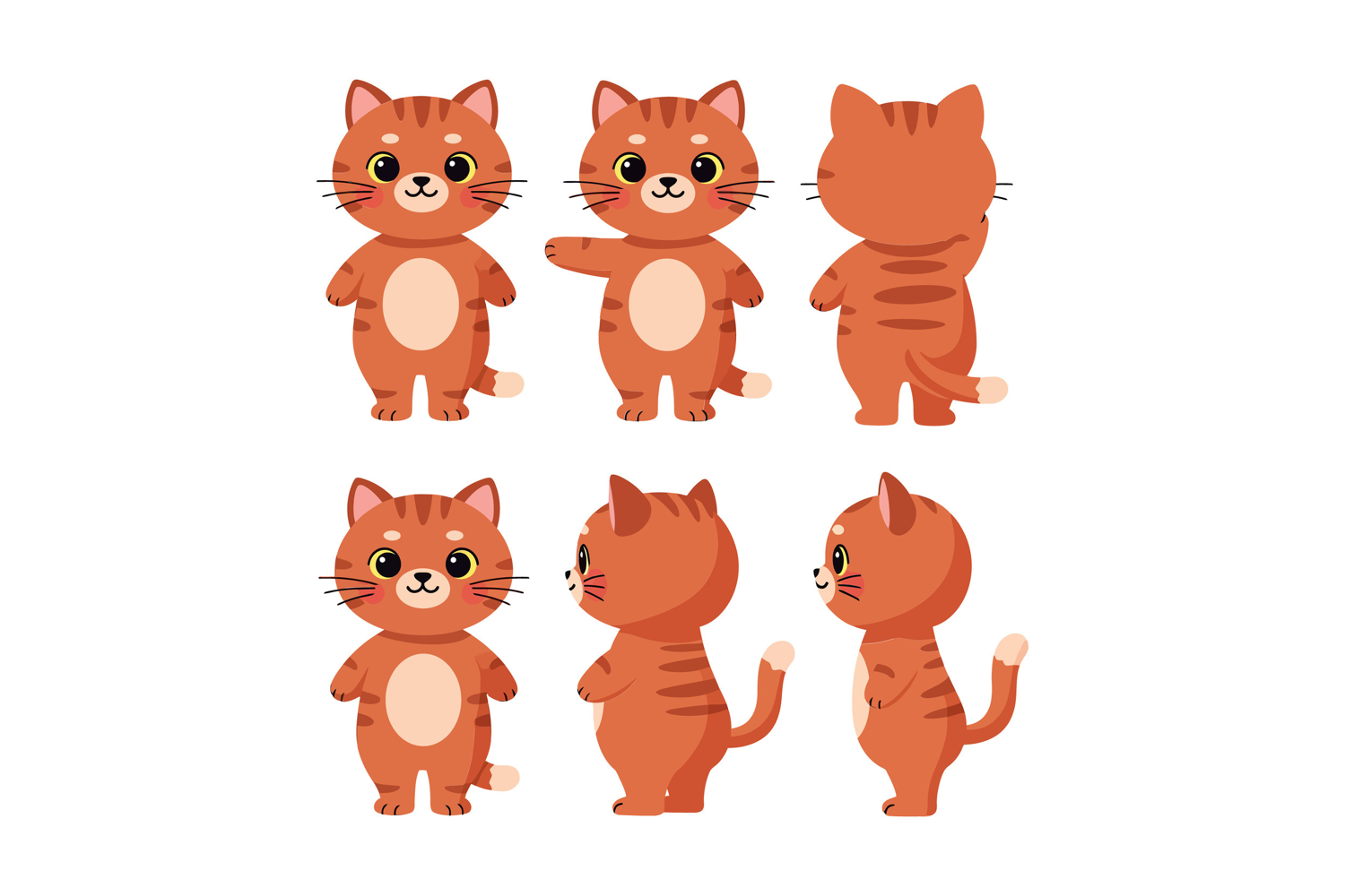 Character Animal Flat Vector Art Cute Design Digital Orange Cat