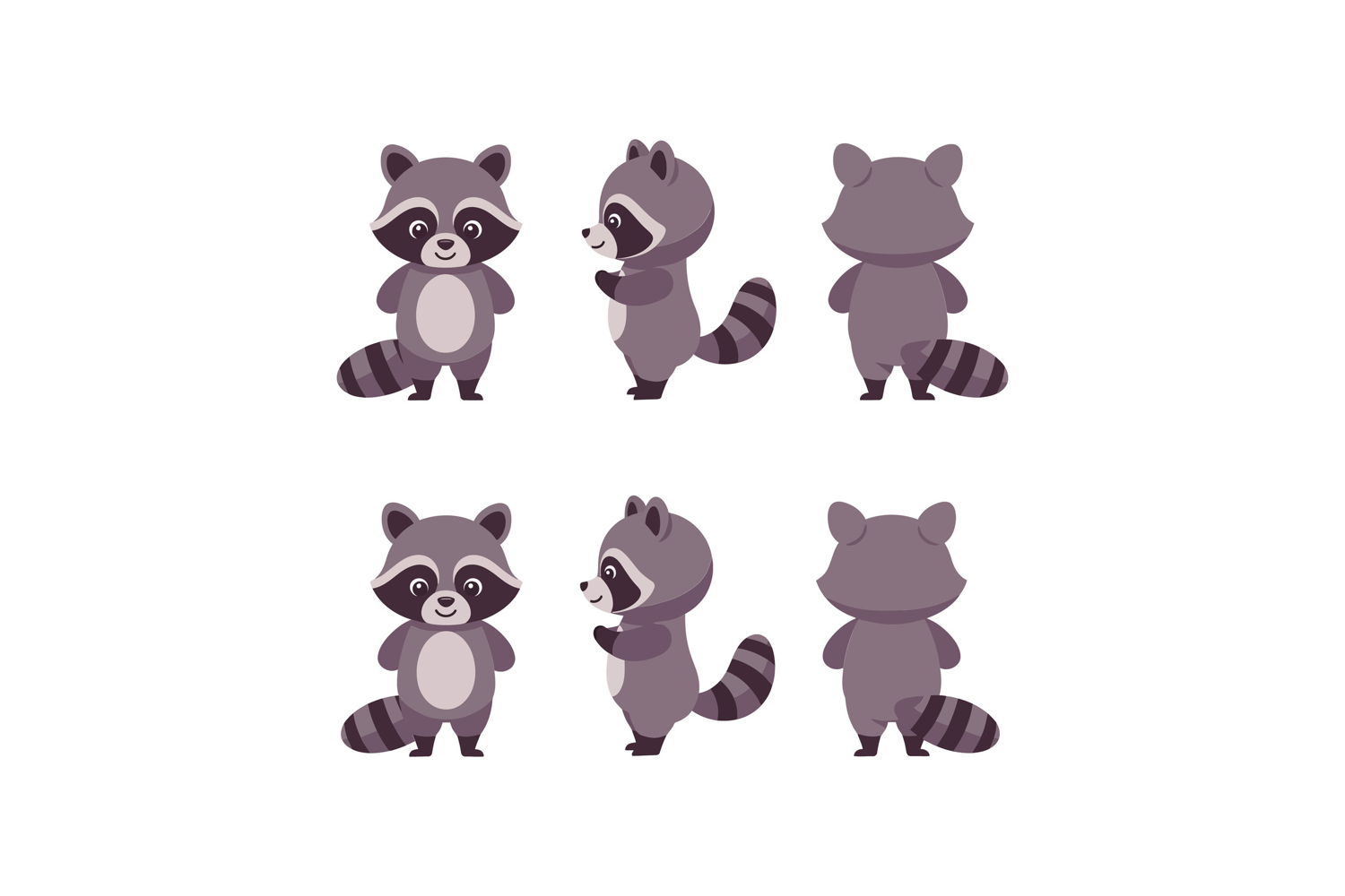 Character Animal Flat Vector Art Cute Style Design Pose Raccoon