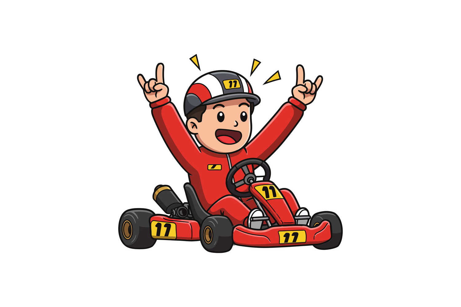 Flat Vector Design Hands Kid Racing Red Excitement Victory Go-kart