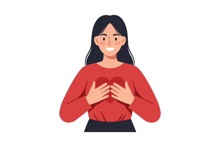 Similar Design Products to Woman smiling while holding a heart illustration with a warm