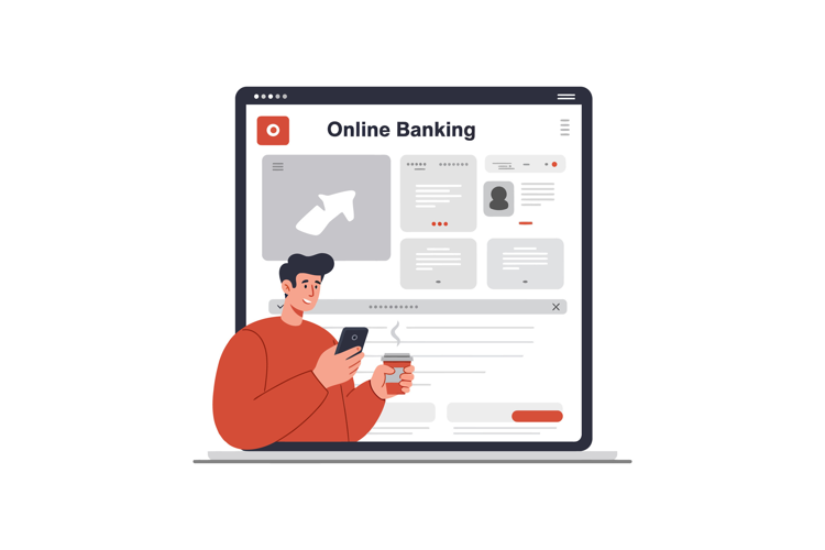 User interacting with online banking interface on a laptop s