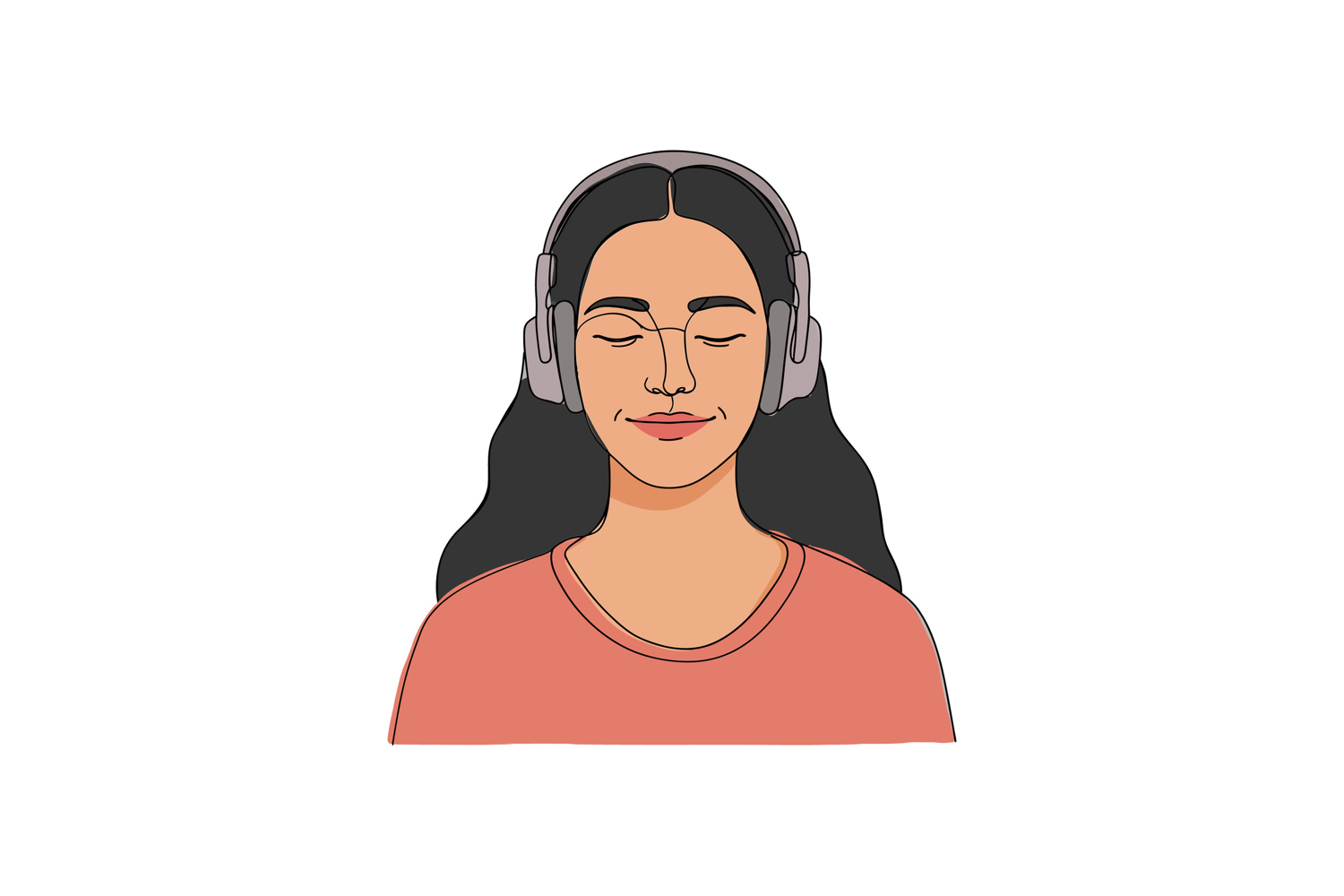 Young woman with long dark hair wearing headphones in a rela example image 1