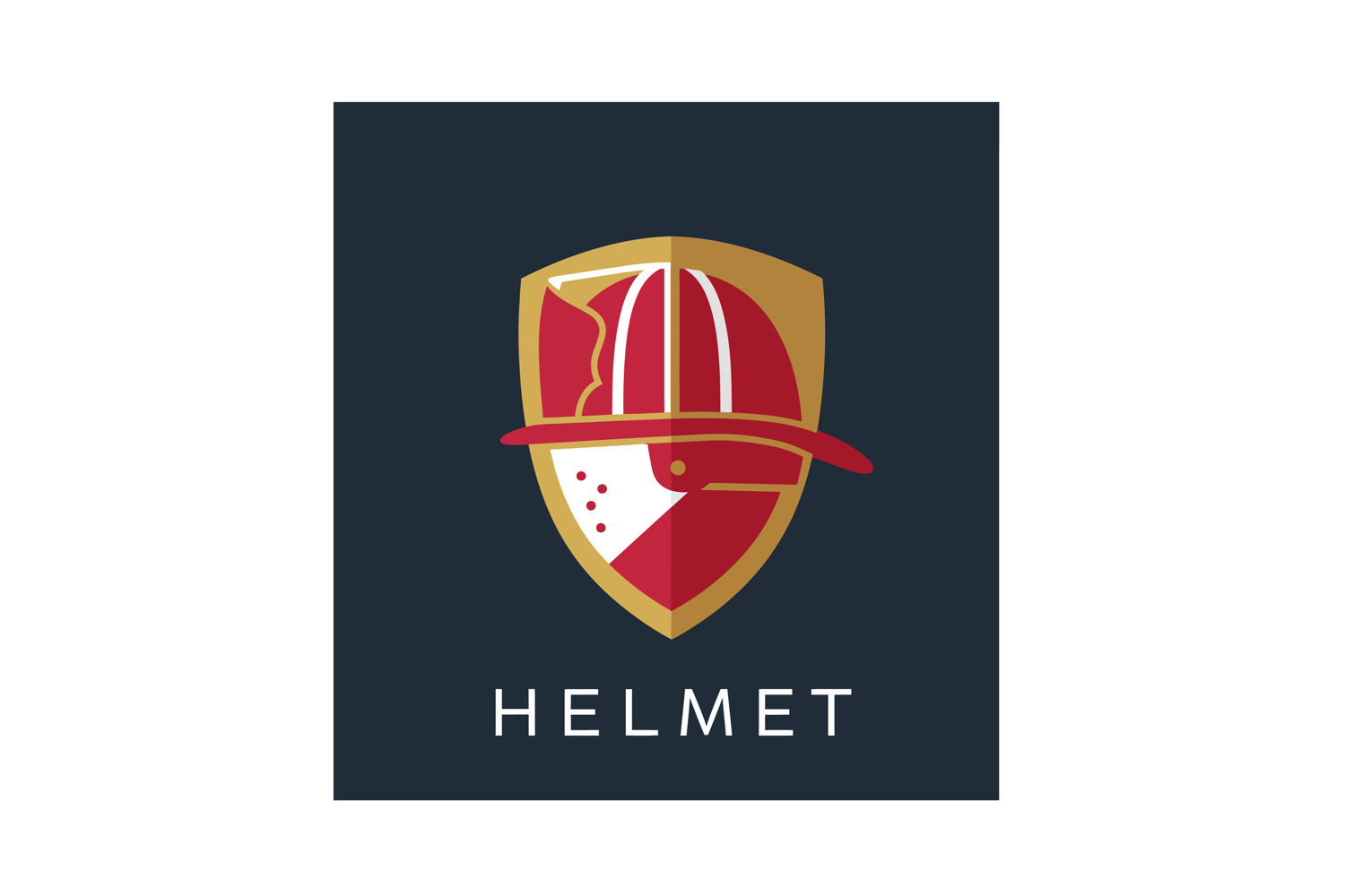 Firefighter helmet emblem logo design with shield and red go example image 1
