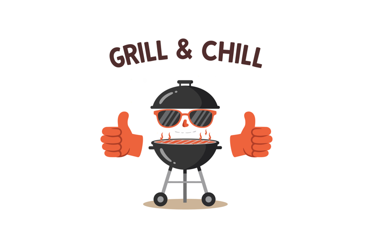 Vector illustration of a smiling grill wearing sunglasses with thumbs up and Grill & Chill text, perfect for casual and fun barbecue designs. Cheerful mood.