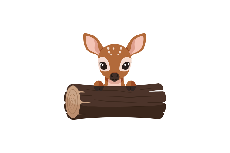 Similar Design Products to Cute fawn peeking over wooden log vector illustration for