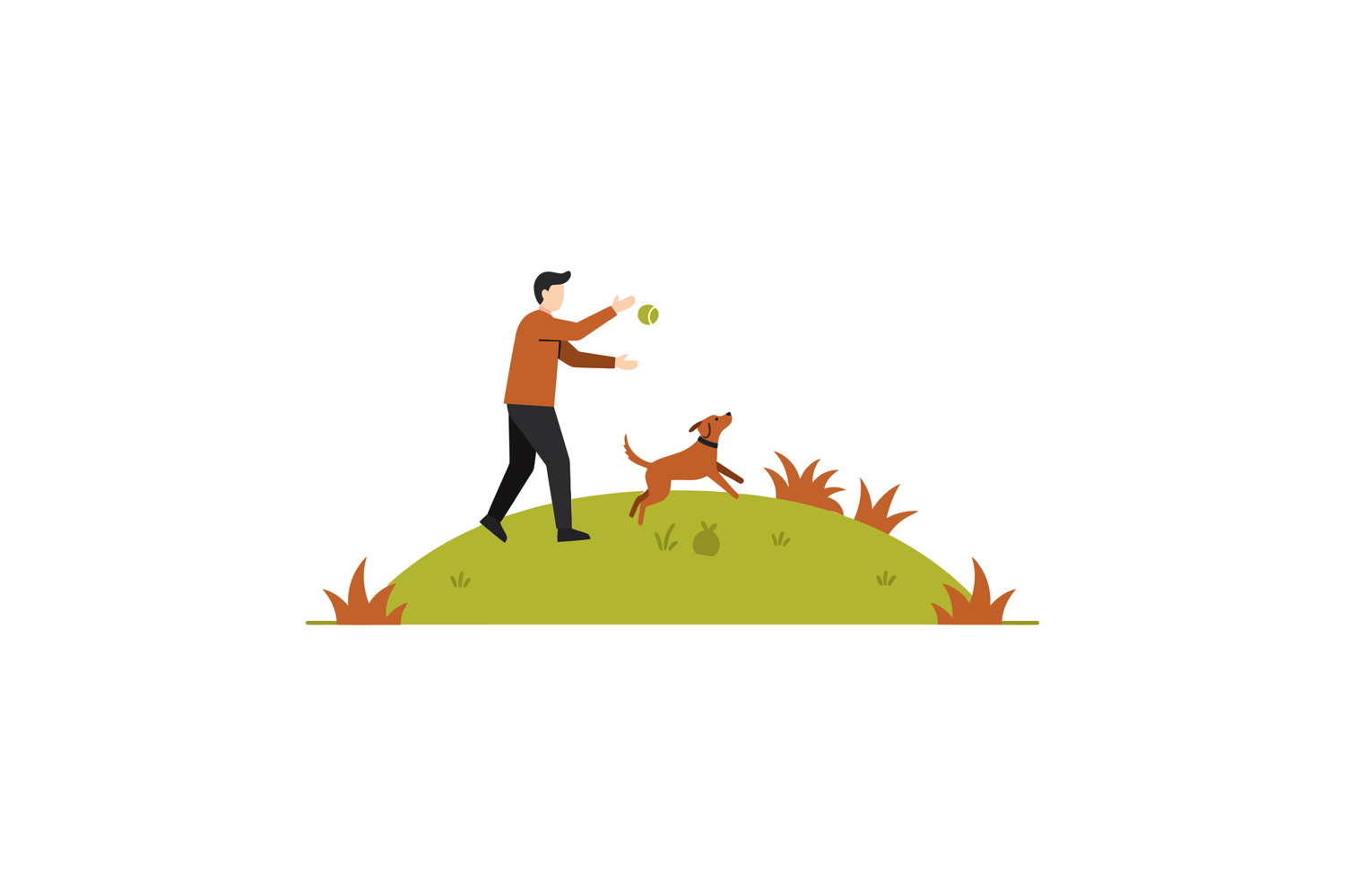Animal Man Play Ball Pet Dog Grass Activity Jump Hill