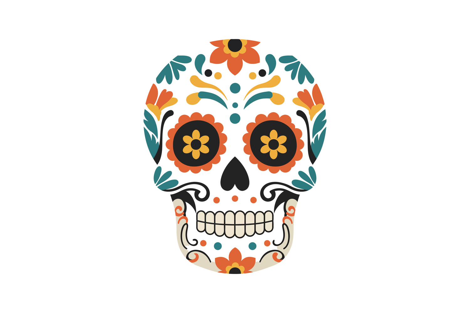 Decorative sugar skull with colorful floral patterns flat de example image 1