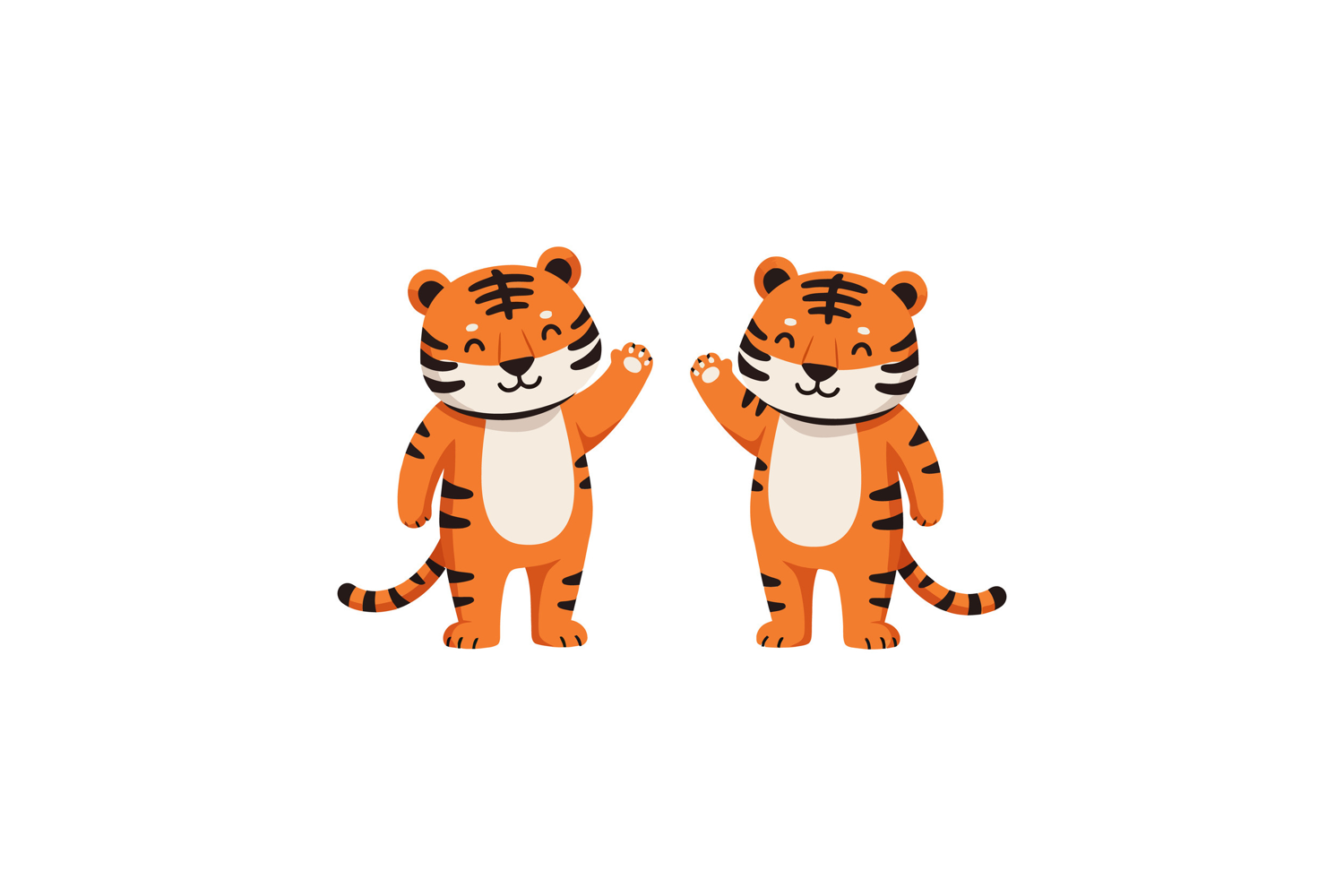 Similar Design Products to Two cheerful cartoon tigers waving happily in a playful flat