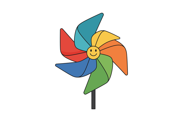Flat Vector Art Design Smile Colorful Outdoor Face Cheerful Pinwheel