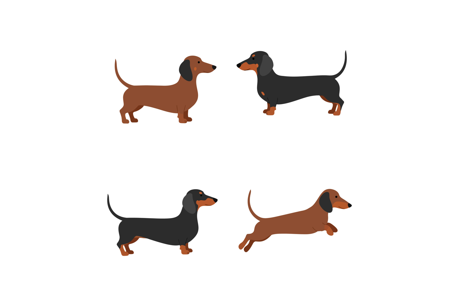 Four playful dachshunds in flat design style showcasing diff example image 1