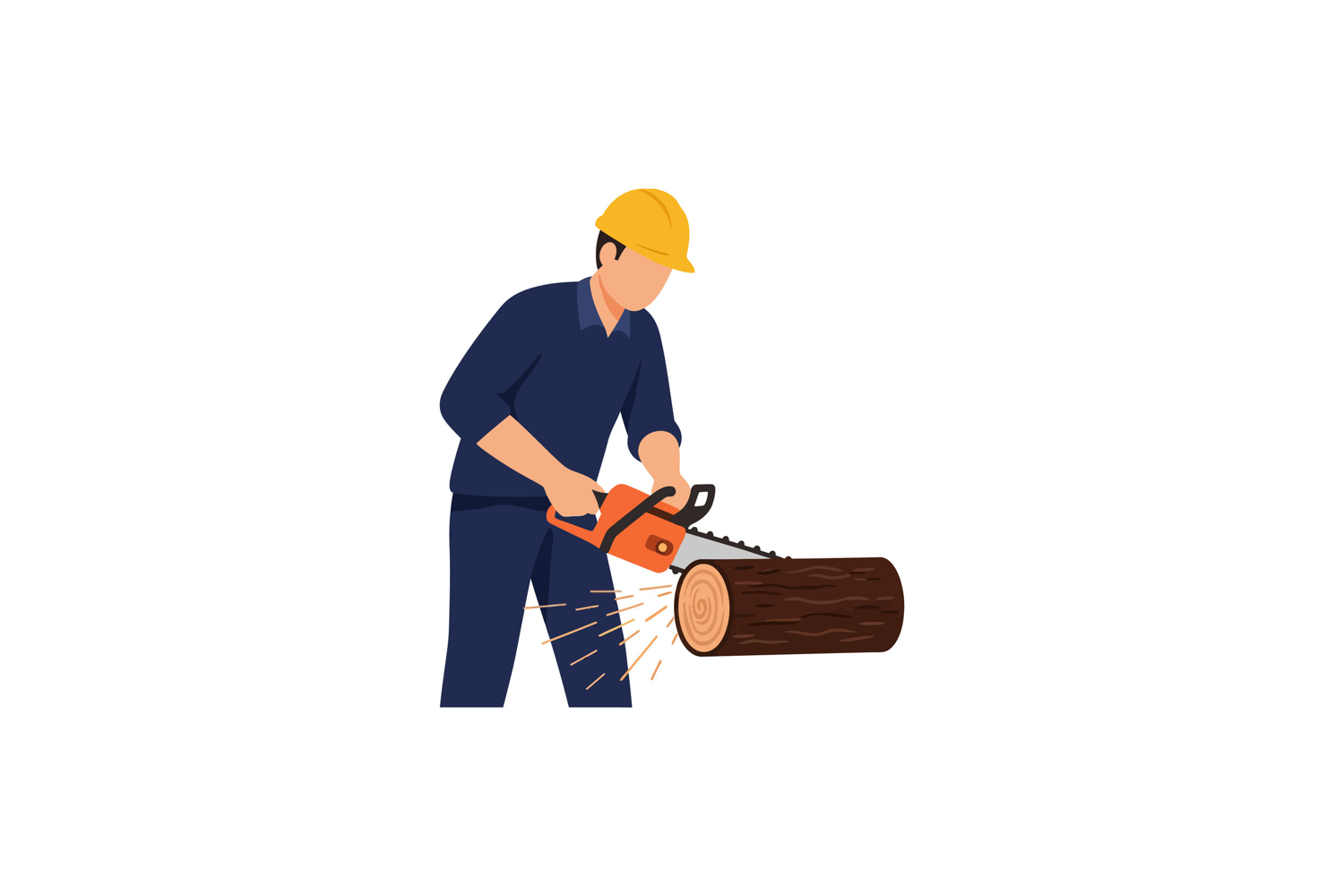 A man cutting a log with a chainsaw in a flat vector art sty example image 1