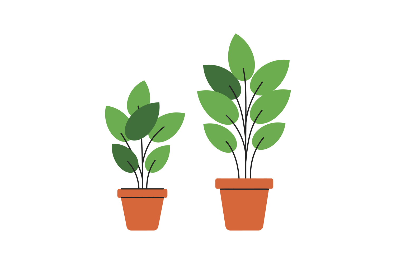 Two vibrant green plants in terracotta pots stand side by side, showcasing a fresh and lively atmosphere in a simple, flat style.