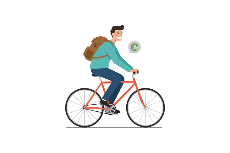 Illustration Vector Man Green Happy Eco Bicycle Backpack Cycling Environment