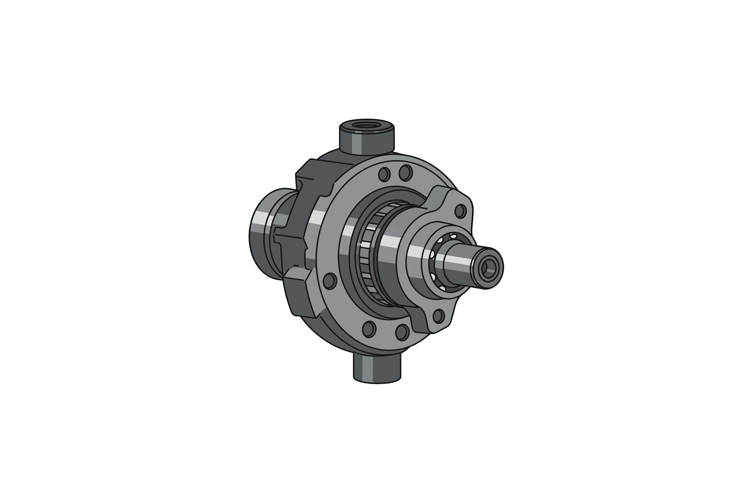 A detailed illustration of a mechanical gear assembly, highlighting intricate components and precision engineering in a flat design style.
