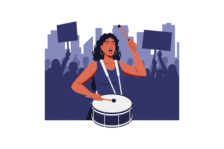 Music Woman Signs Crowd Drum Protest Activism Rally Demonstration Percussion