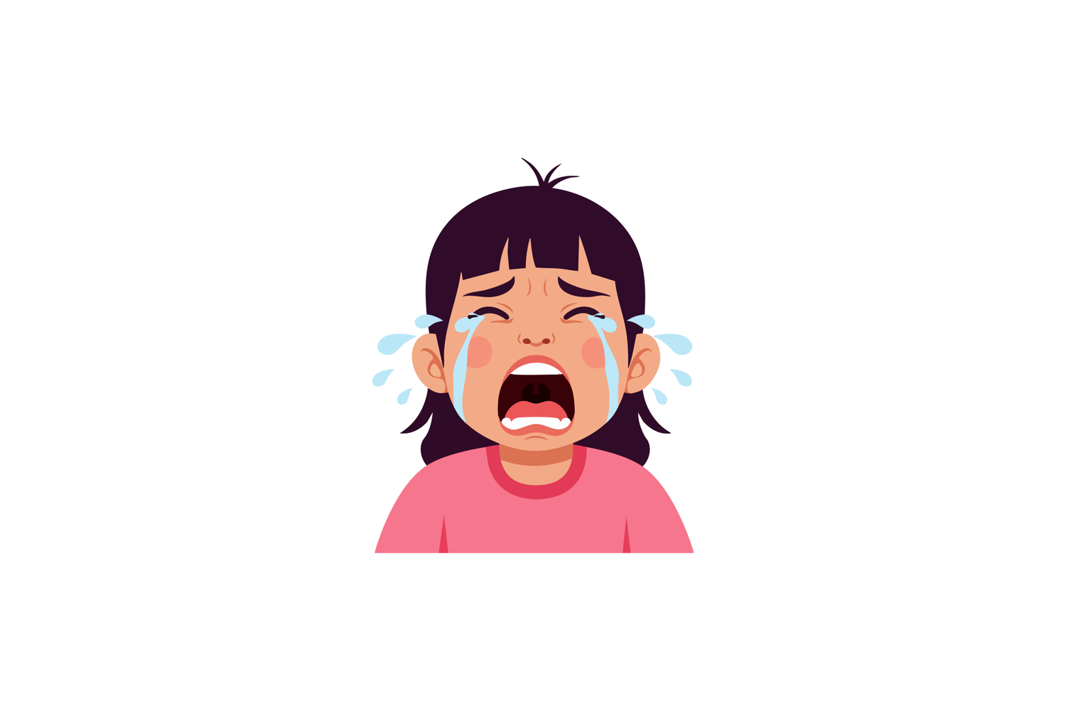 Illustration shows a young girl crying loudly with tears flowing down her face, conveying strong emotions of sadness and distress. Emotional.