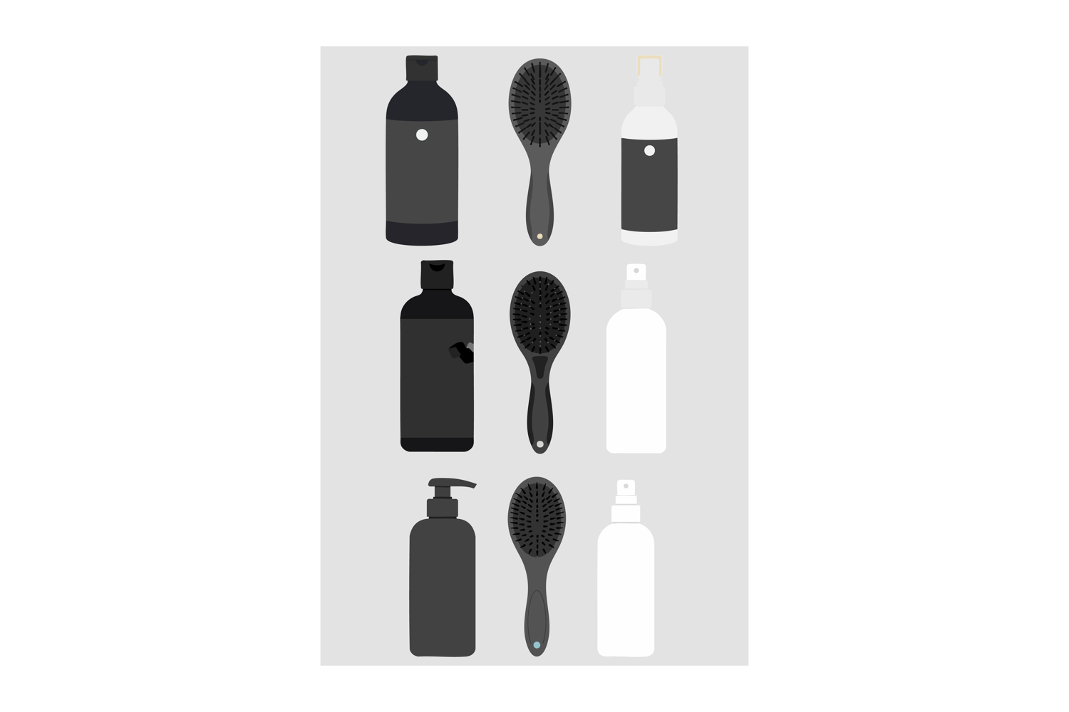 Hairbrush and Shampoo Bottles Vector Set with Black and Whit example image 1