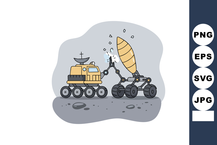Similar Design Products to Mars rover and robotic arm repairing satellite dish on rocky