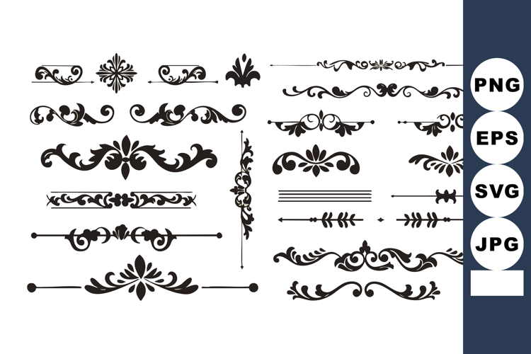 Vector features various black vintage ornamental borders and flourishes in decorative style, perfect for design projects, elegant mood.