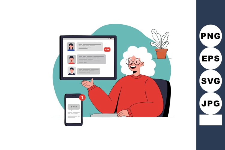 Similar Design Products to Elderly woman video chatting with family on computer and pho