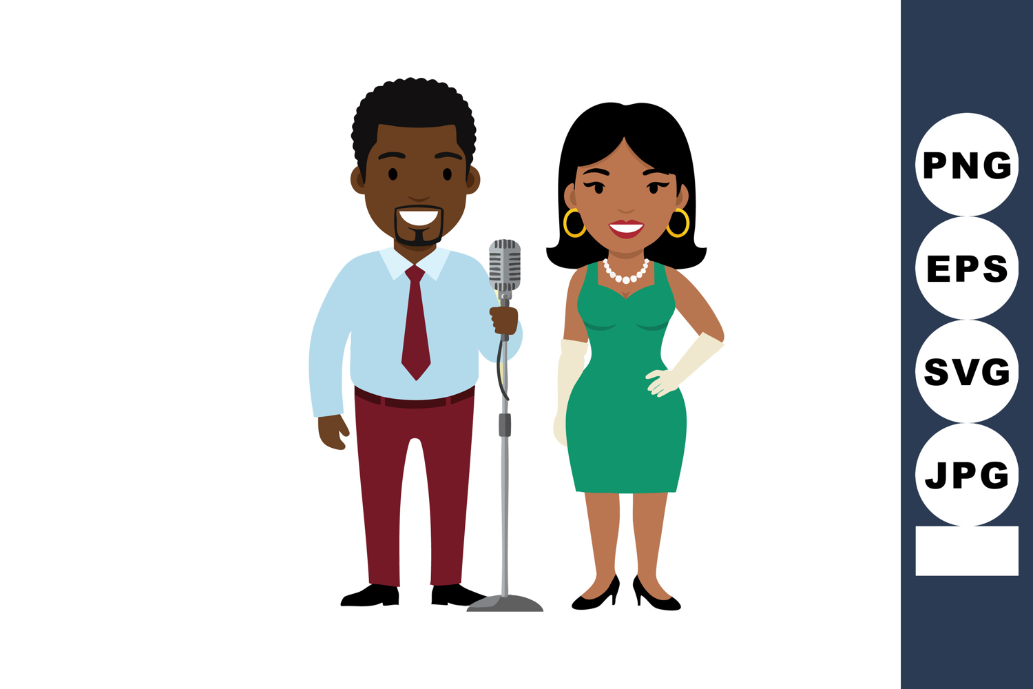 Vintage Elegant American Man Woman Dress Microphone African Singing Attire