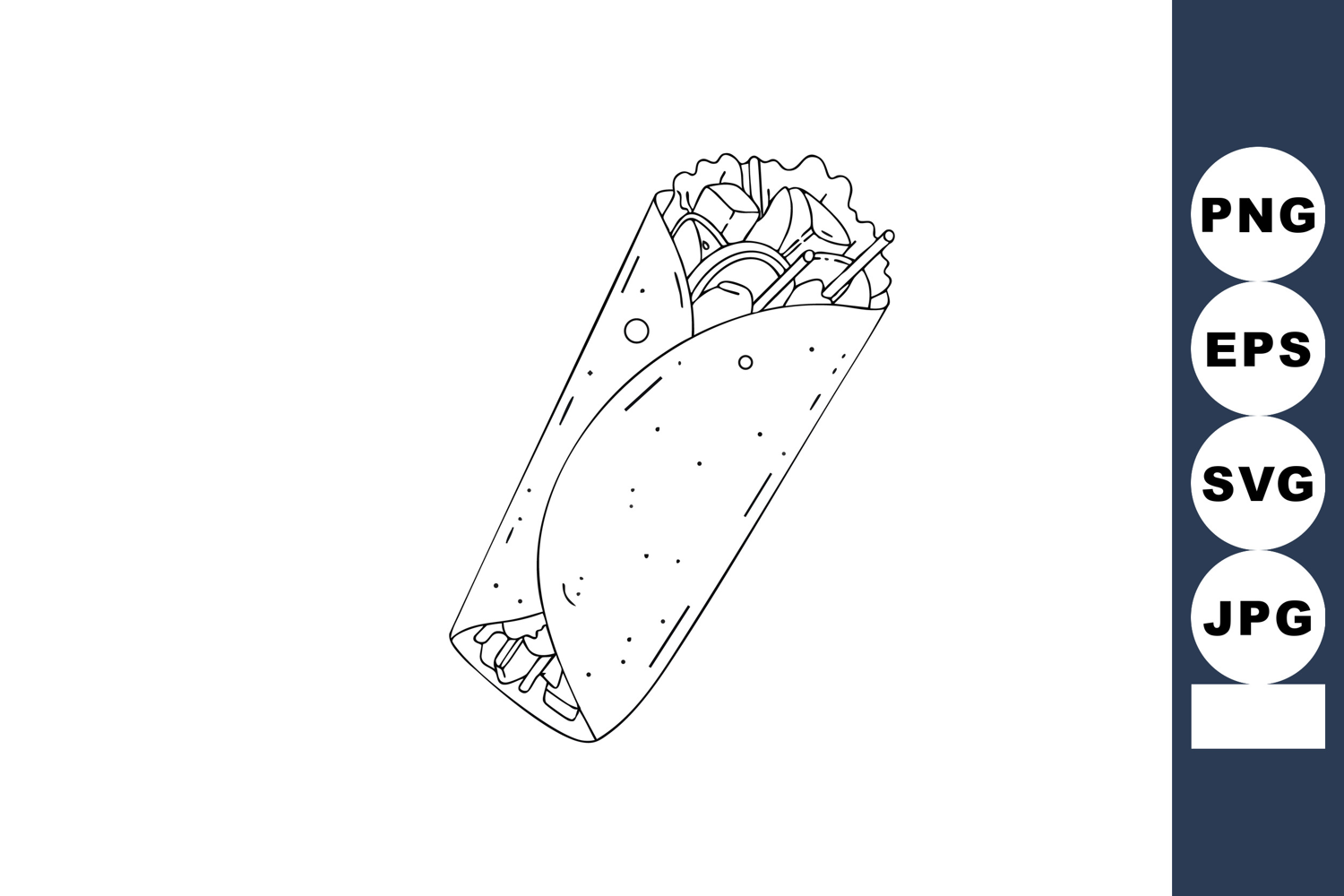 Burrito wrap with fresh vegetables and sauce line art vector example image 1