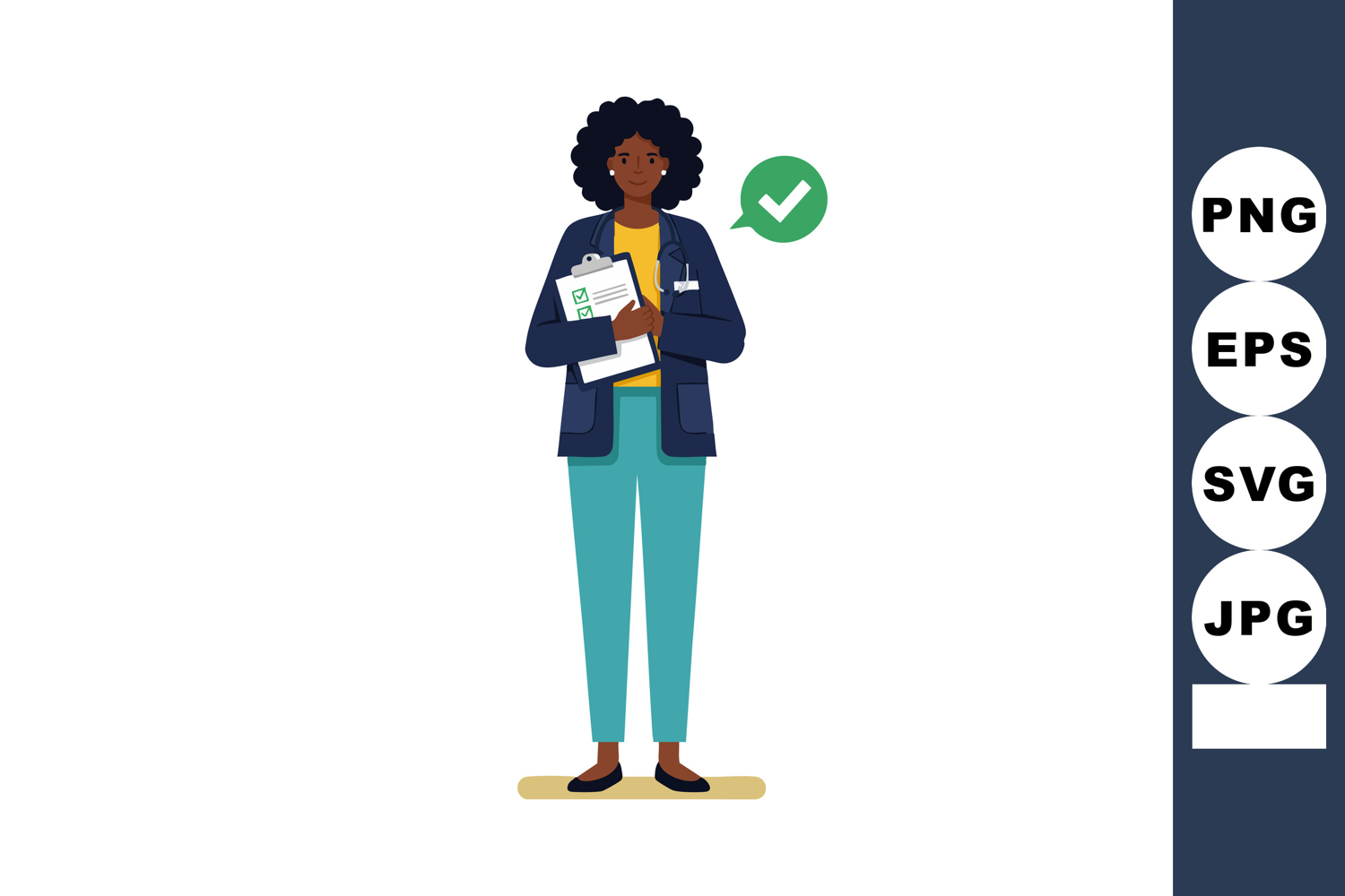 Illustration Vector Business Professional Woman Standing Clipboard Confident Checklist Approval