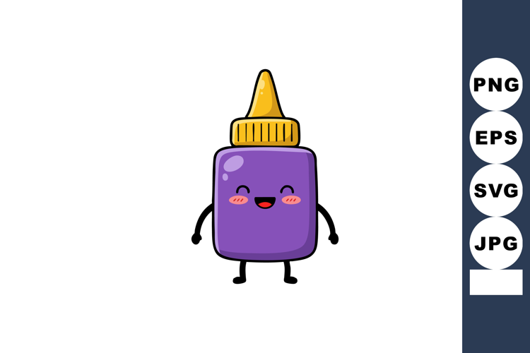 Cute purple glue bottle with yellow cap smiling cartoon char example image 1