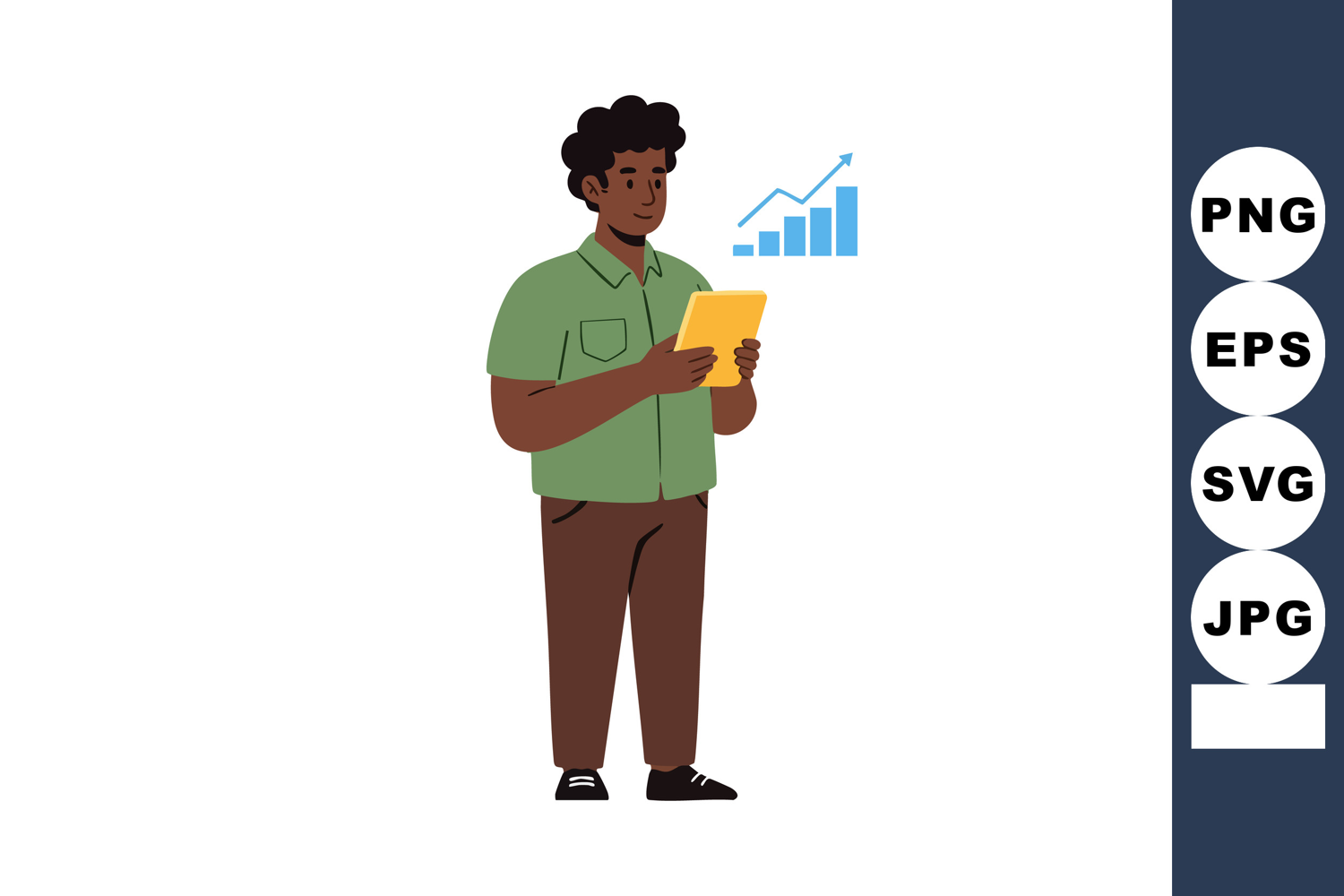Man holding tablet analyzing business growth chart vector il example image 1