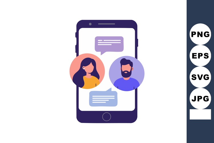Mobile phone chat interface with man and woman profile icons