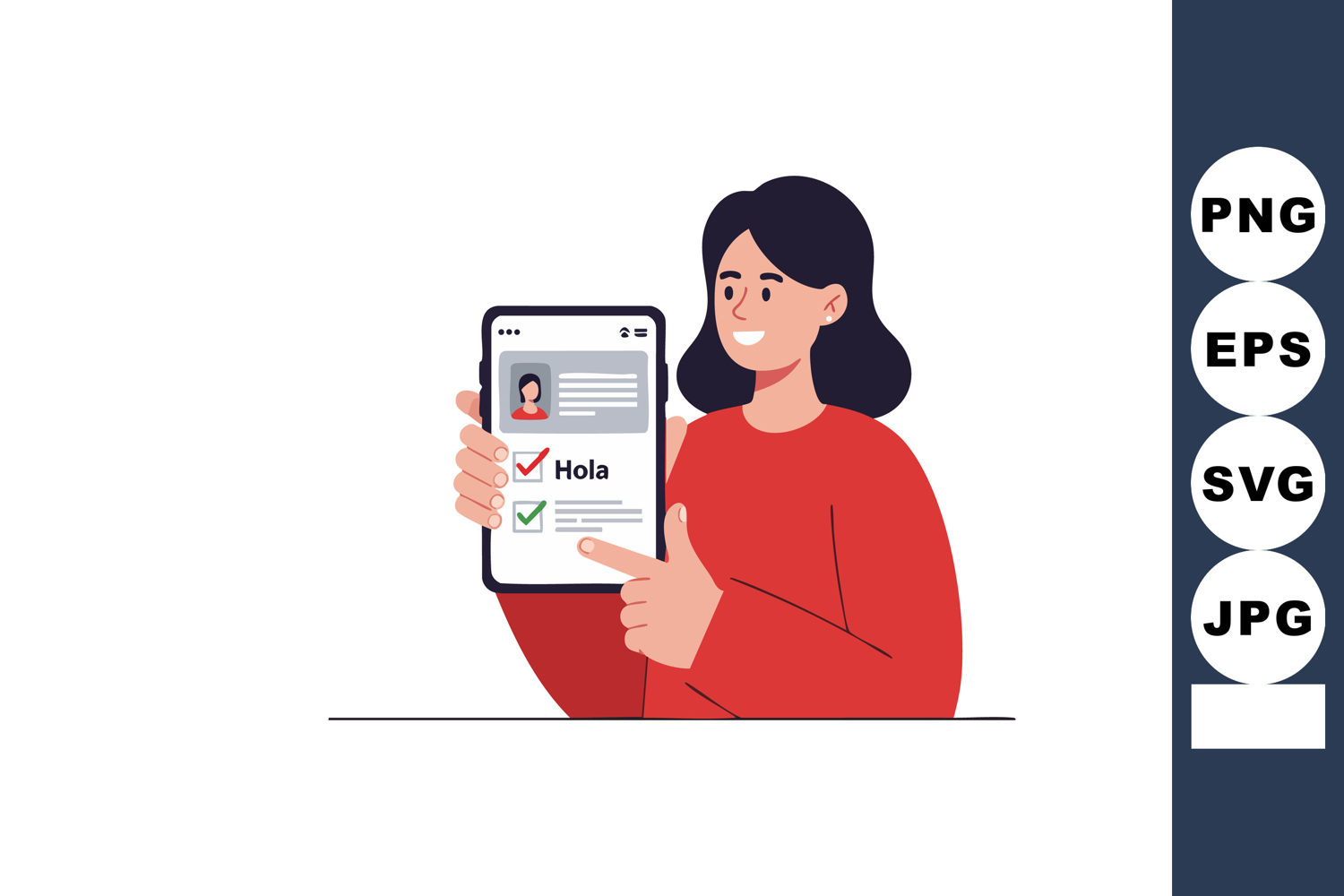 Similar Design Products to Woman holding digital tablet showing checklist and profile i