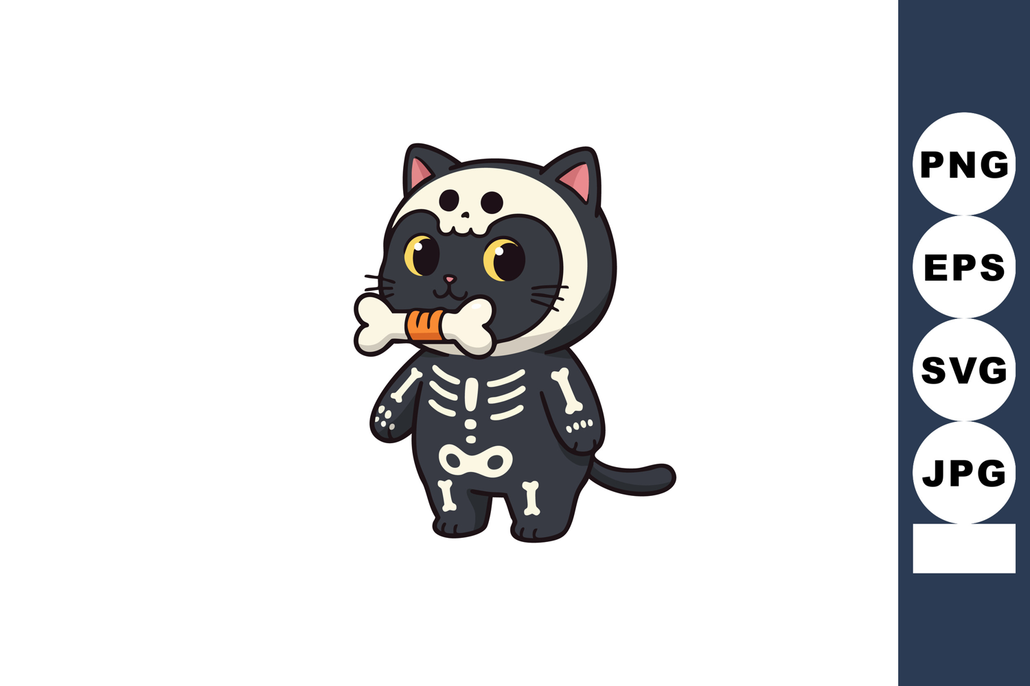 Cartoon Vector Halloween Black Cute Bone Cat Spooky Skeleton Costume