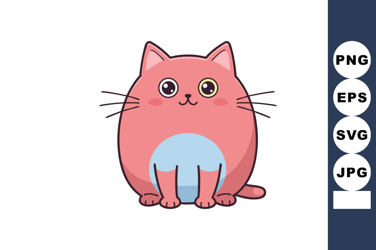 Cute pink cat with blue belly sitting adorable cartoon vecto example image 1