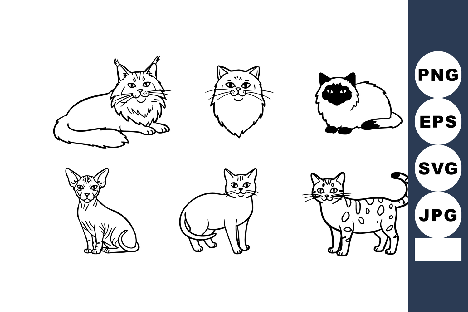 Similar Design Products to Various cat breeds line art vector illustration in black and