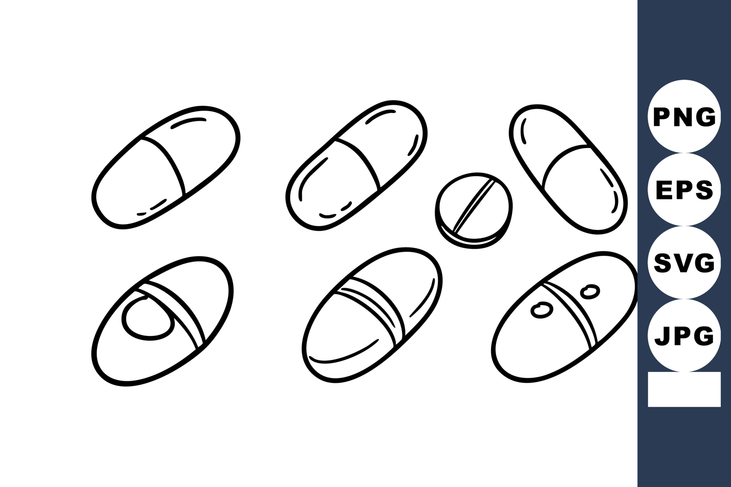 Medical Pills and Capsules Vector Illustration in Black and example image 1