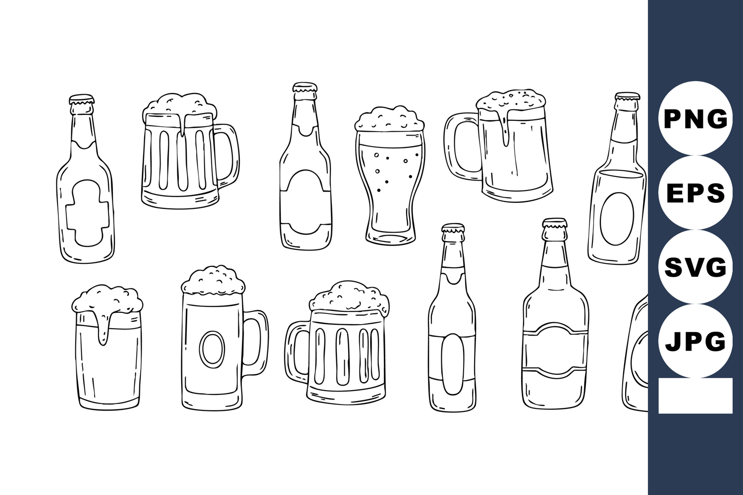 Similar Design Products to Various beer bottles and mugs vector illustration in black a
