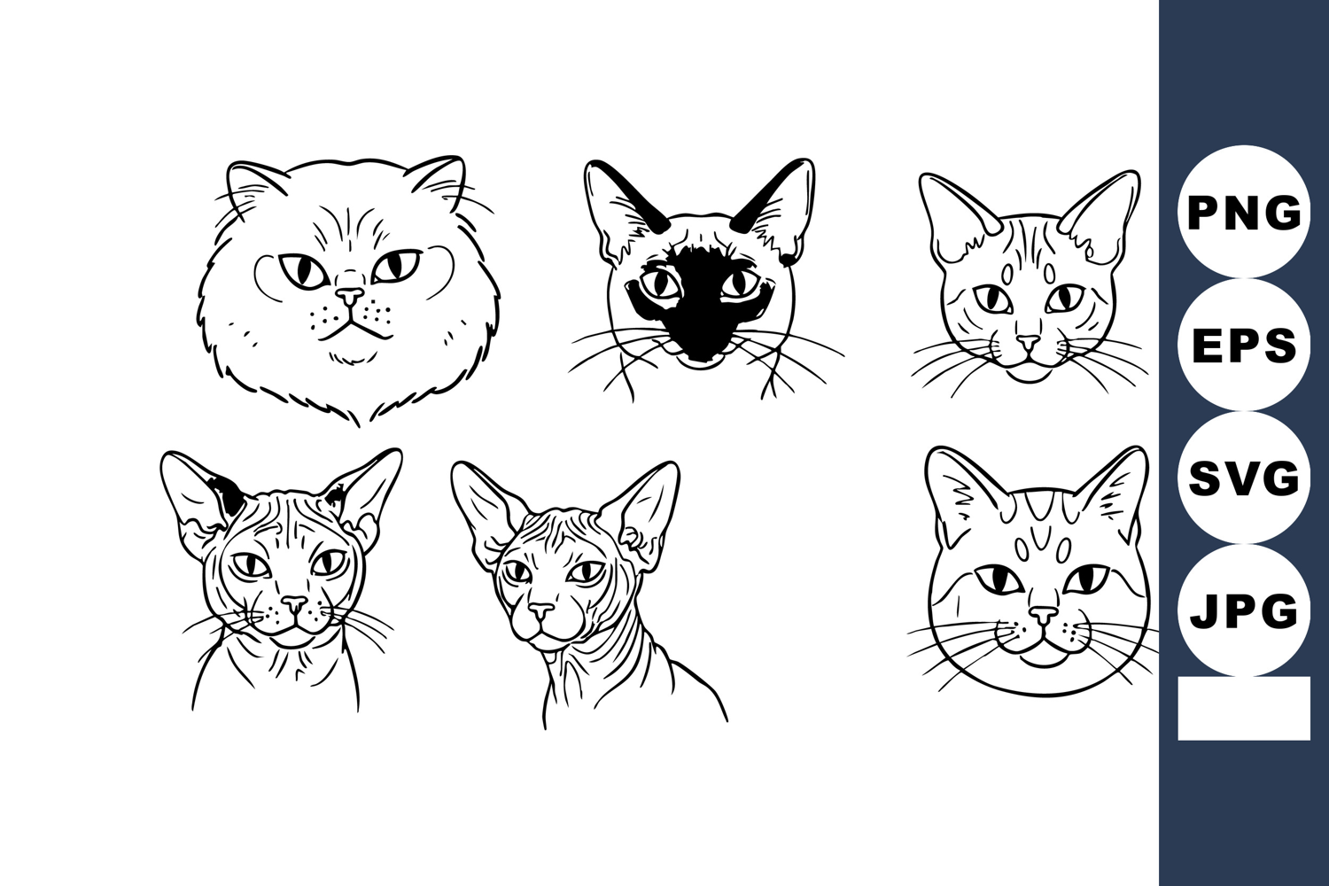 Similar Design Products to Cat Breed Heads Vector Line Art Collection Including Various