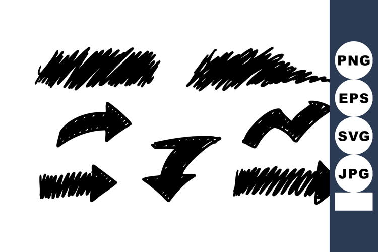 This vector set shows hand drawn arrow icons with rough sketch texture, useful for graphic design and navigation, conveying dynamic and creative mood.