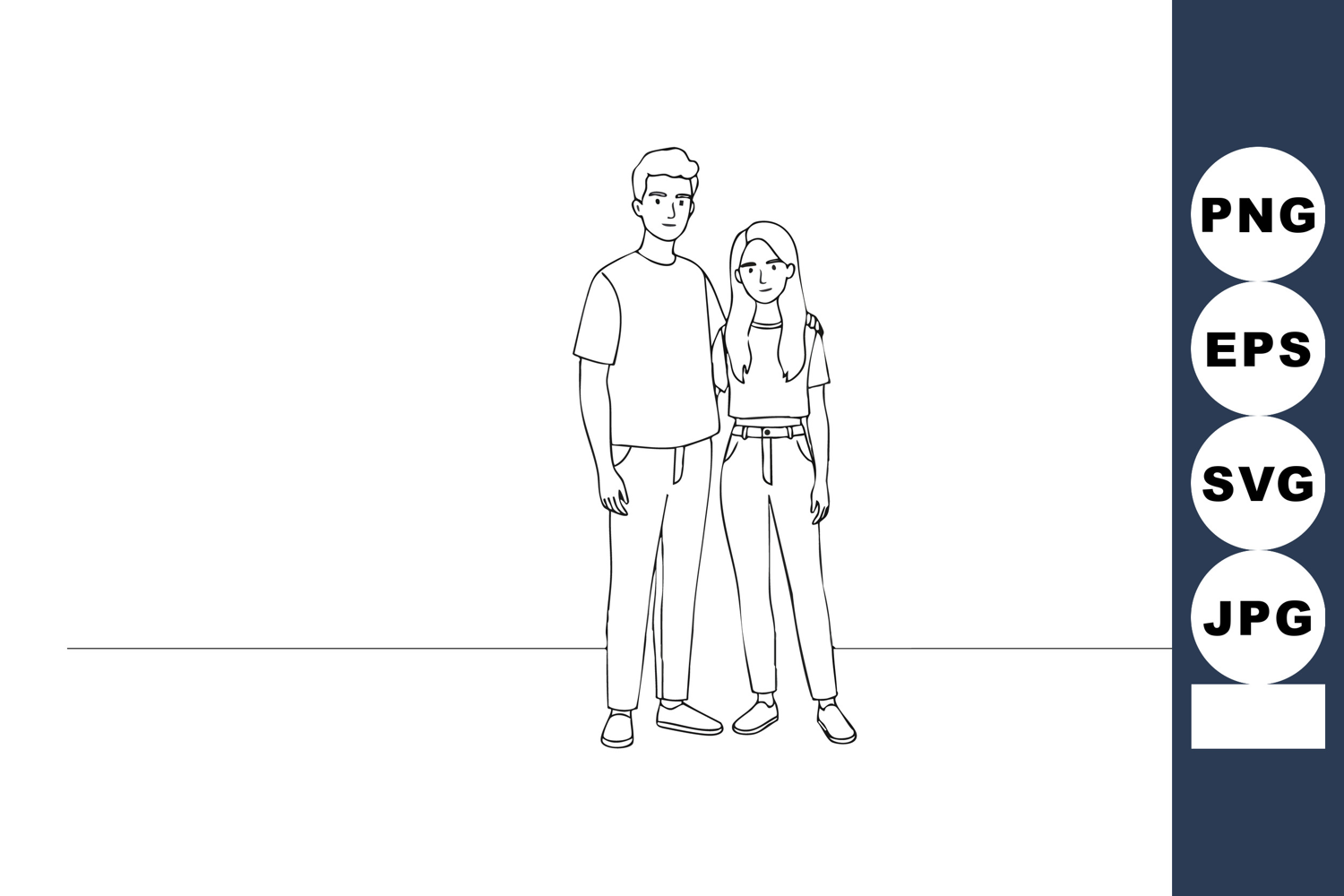 Young man and woman standing casual pose simple line art vec example image 1