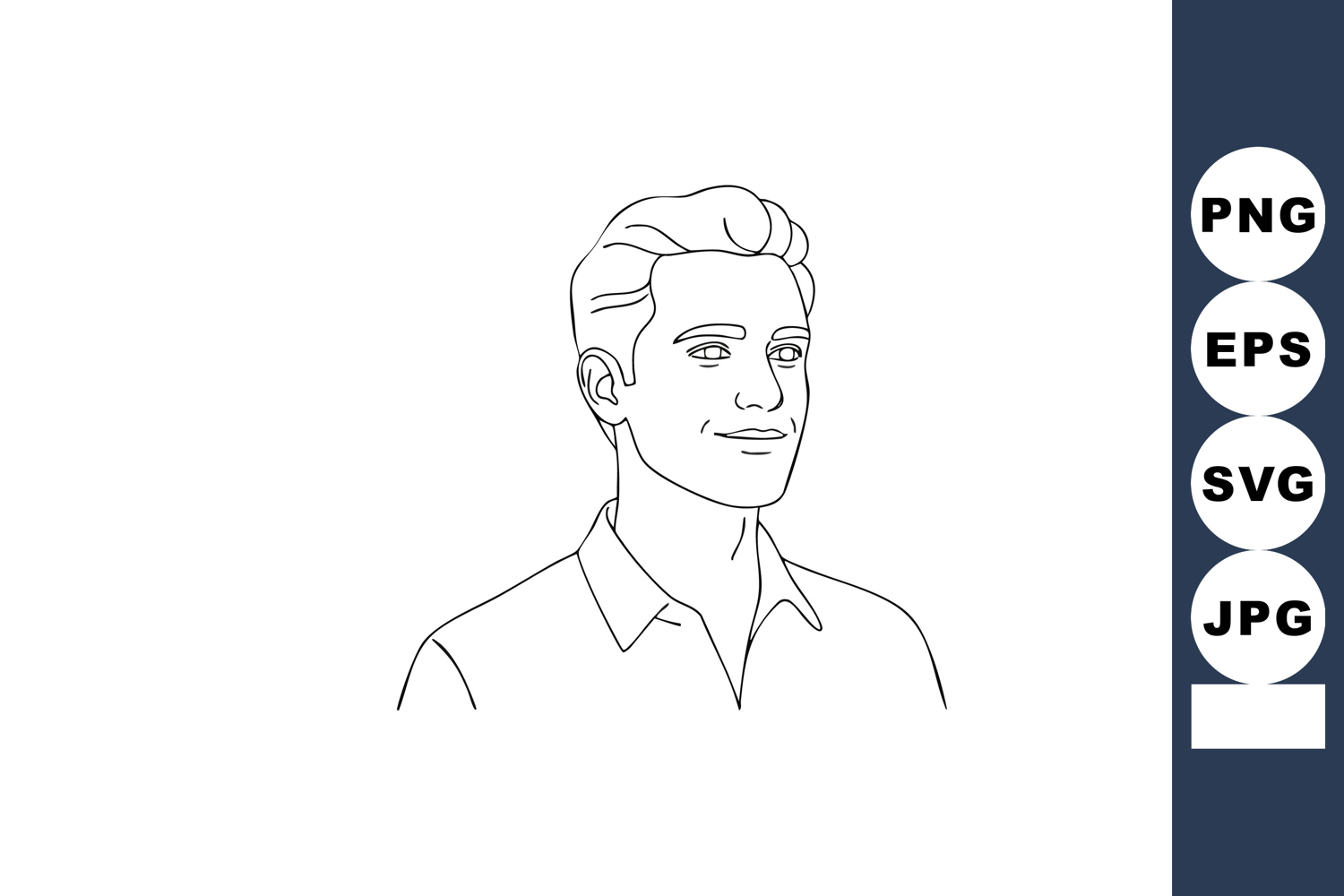 Man Portrait Line Art Vector Illustration with Casual Shirt example image 1