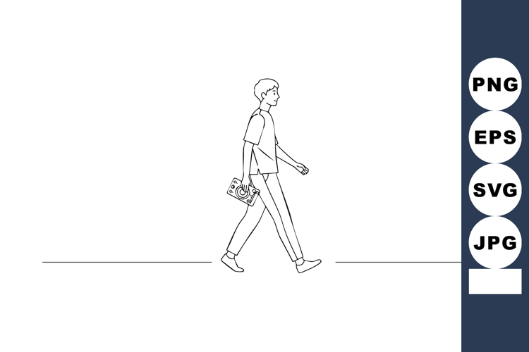 Young man walking with flowers in hand minimalistic vector i example image 1