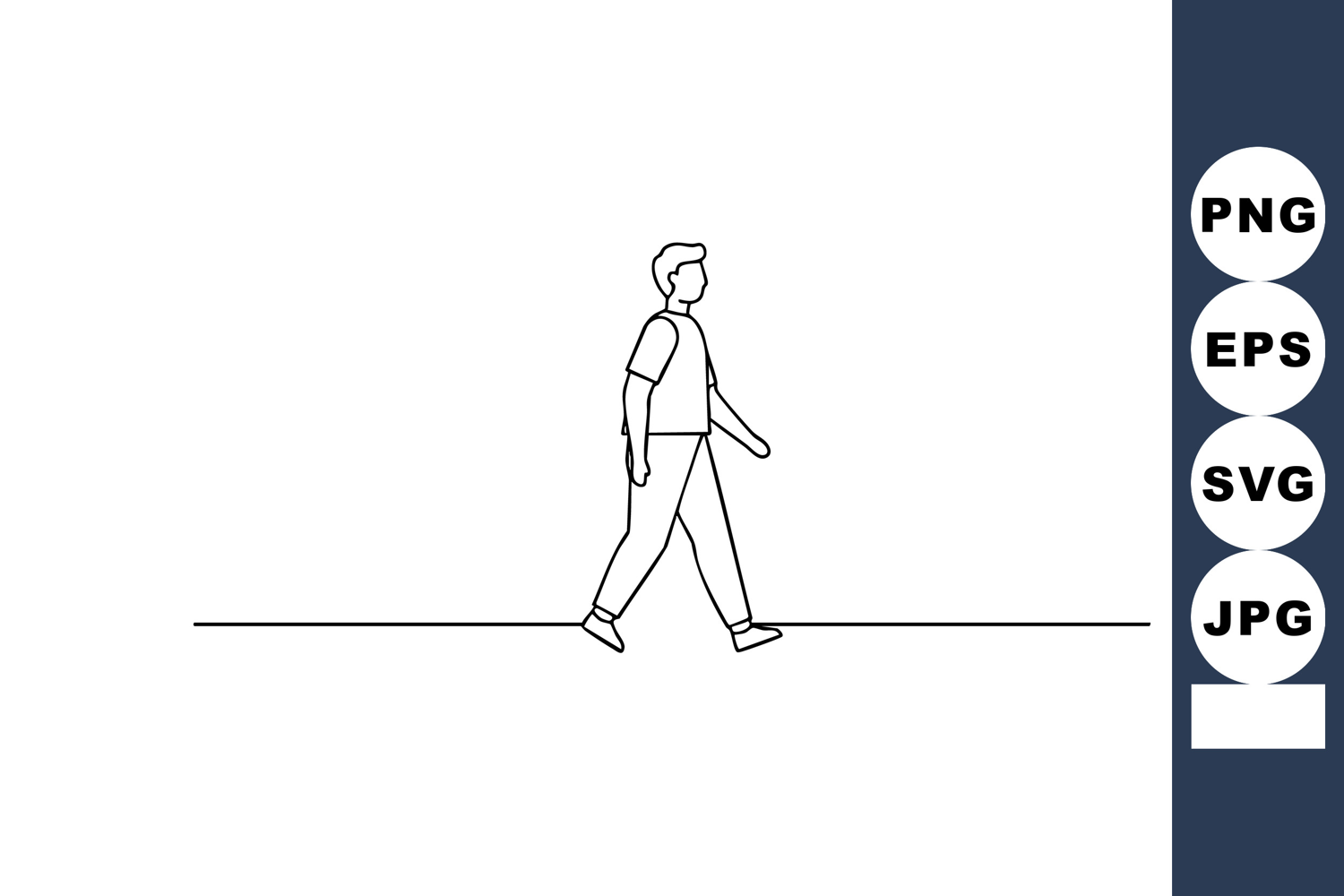 Illustration Line Vector Man Art Black Silhouette White Walking Continuous