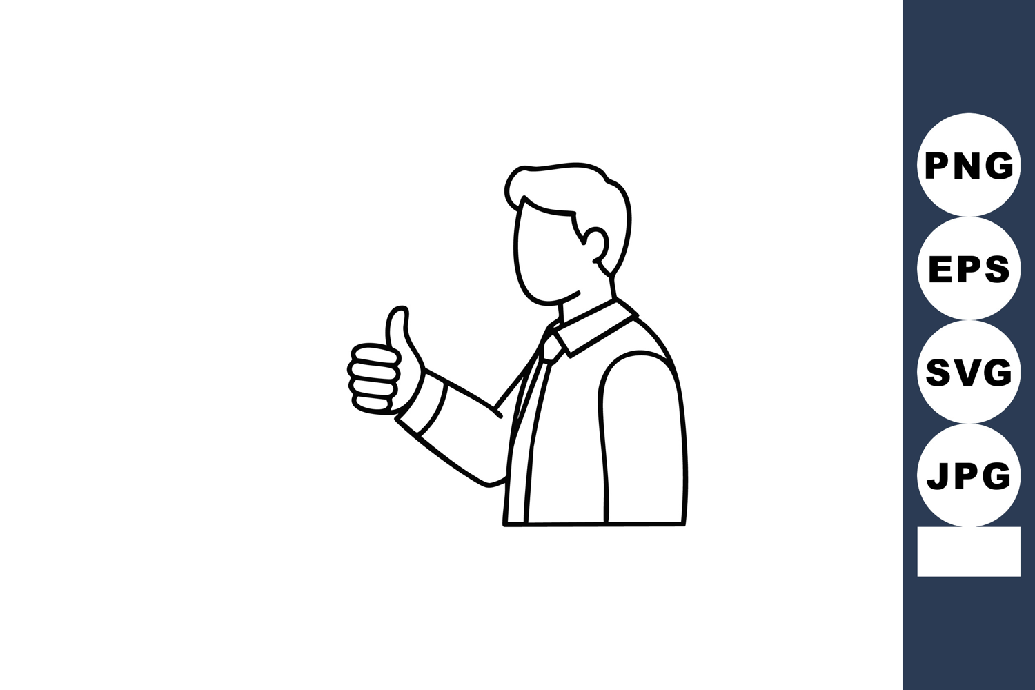 Businessman giving thumbs up gesture simple line art vector example image 1