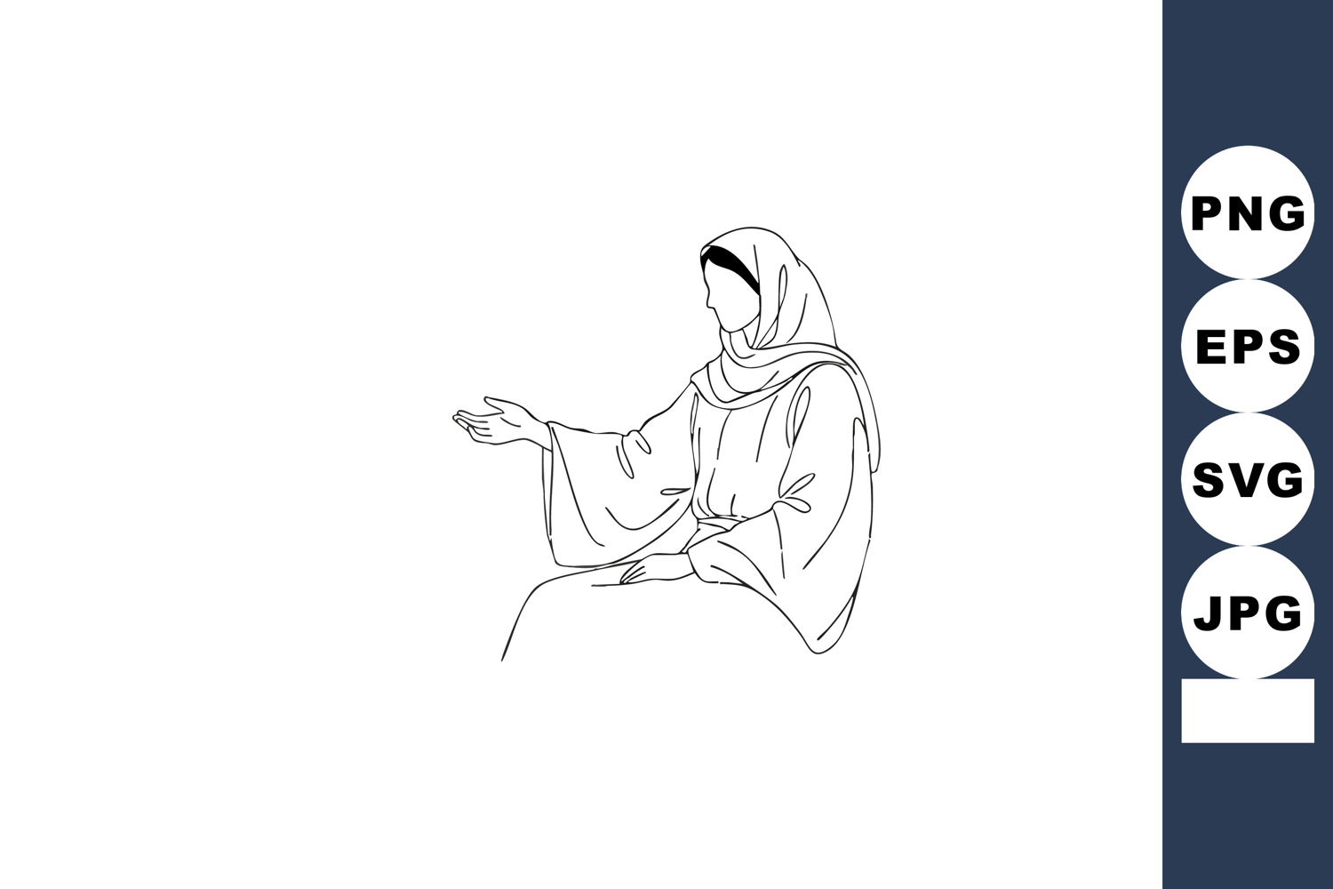 Woman Wearing Hijab Sitting and Gesturing Line Art Vector Il example image 1